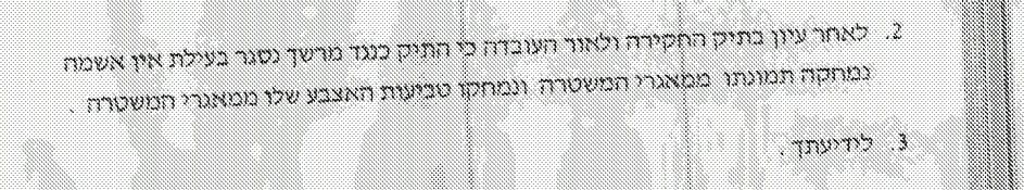 הפונה שאחרי החקירה נלקחו ממנו טביעות אצבע ותמונה (במקרה לא לקחו דנ"א), ביקש מאיתנו להסיר את פרטיו מהמאגר המשטרתי. פנינו למטה הארצי בבקשה להסיר את הפרטים מן המאגר והבקשה התקבלה ופרטיו נמחקו מהמאגר.