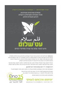 Ono Academic College invites Jerusalem students to apply to the Amos Oz Memorial “Pen of Peace” program. Amos Oz, the prize-winning Israeli author, was one of the program’s founders.