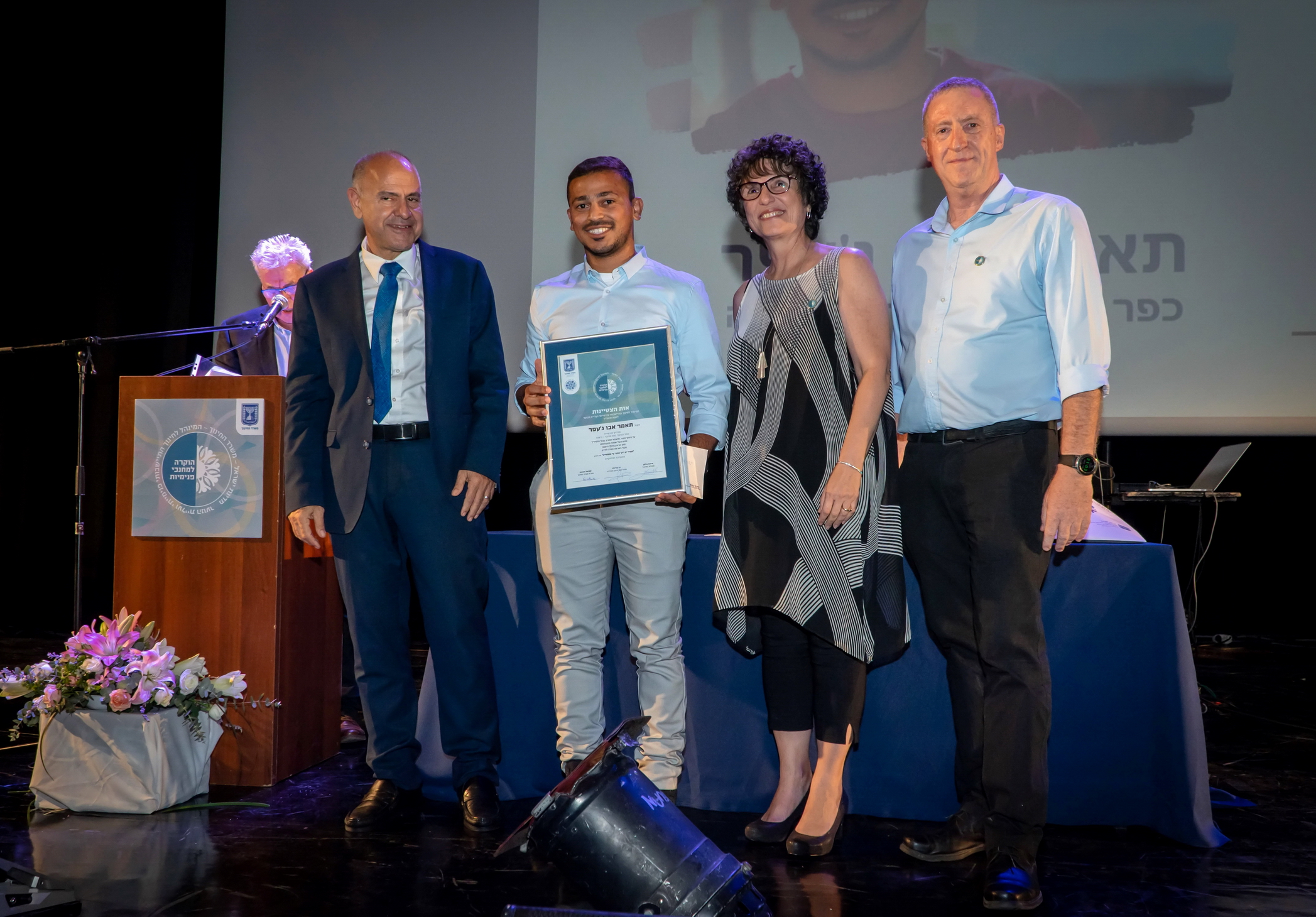 ביום חמישי 19.9 התקיים ערב הוקרה למחנכי פנימייה בהשתתפות מנכ”ל משרד החינוך שמואל אבואב וכאלף נציגי מוסדות חינוך פנימתיים מכל רחבי הארץ. 12 מחנכי פנימיות זכו לציון לשבח וקבלו הוקרה אישית על פעילותם הייחודית. אחד מהם, תאמר אבו ג’עפר, בן הפזורה הבדואית, סטודנט שלנו במחזור הראשון בחוג לחינוך וחברה עם התמחות בספורט, מנהל הפנימייה בנווה מדבר בניצנה, הפנימייה הראשונה שנפתחה עבור בני נוער מהמגזר הבדואי. תאמר עזב את לימודי ההנדסה לטובת לימודי חינוך וחברה, תחום בו הוא רואה את עתידו המקצועי. גאווה אמתית!