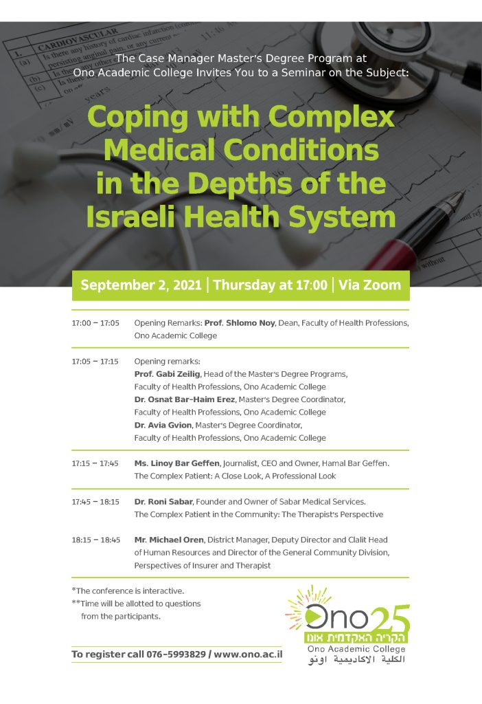 Ono Academic College’s Case Manager Master’s Degree Program presented a seminar in September 2021 on the topic of “Coping with Complex Medical Conditions in the Depths of the Israeli Health System”