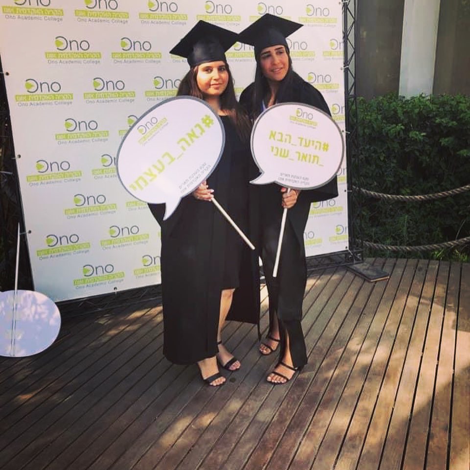These days, Ono Academic College is holding numerous diploma awarding ceremonies for its recent graduates. Despite the difficulties they encountered over the last couple of years, our students persevered and are now reaping the rewards of their effort. Signs they carried included the hashtags: