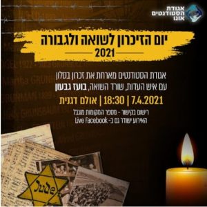 On the eve of Holocaust Memorial Day, Wednesday 7.4.2021, Ono will host community member and Holocaust survivor, Mr. Boaz Givon. In addition to his presentation, the evening will include: