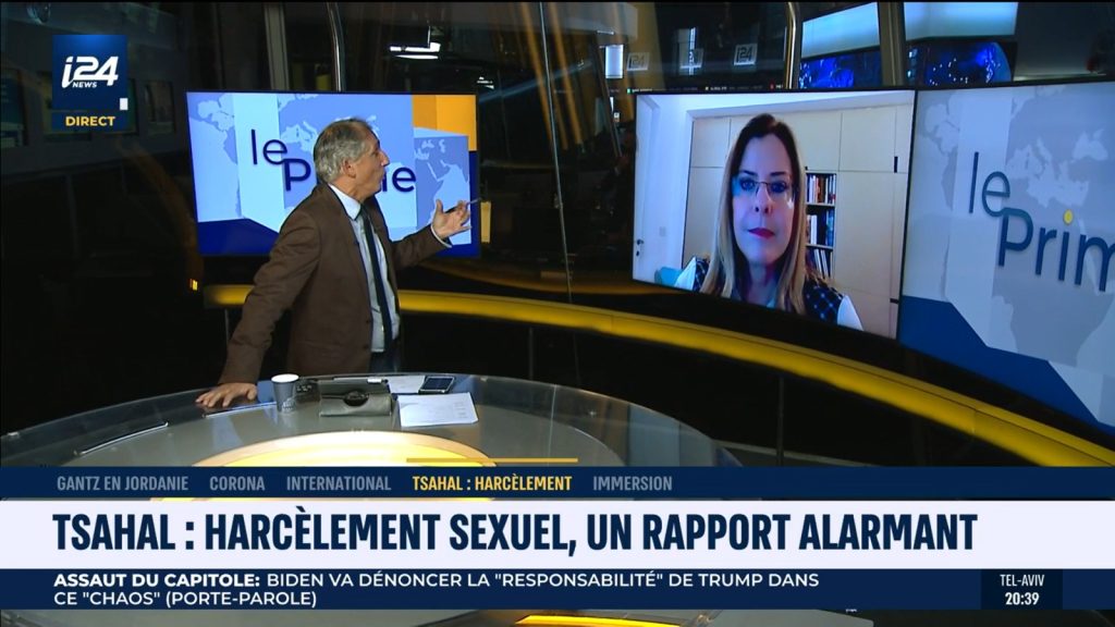Prof. Dana Pugach, director of the Noga Center for Crime Victims at Ono Academic College, was interviewed on Israel’s Channel i24 French Language newscast regarding the IDF’s annual report reviewing the number of harassment and sexual assaults in the IDF. She noted that the growth of this trend is alarming.