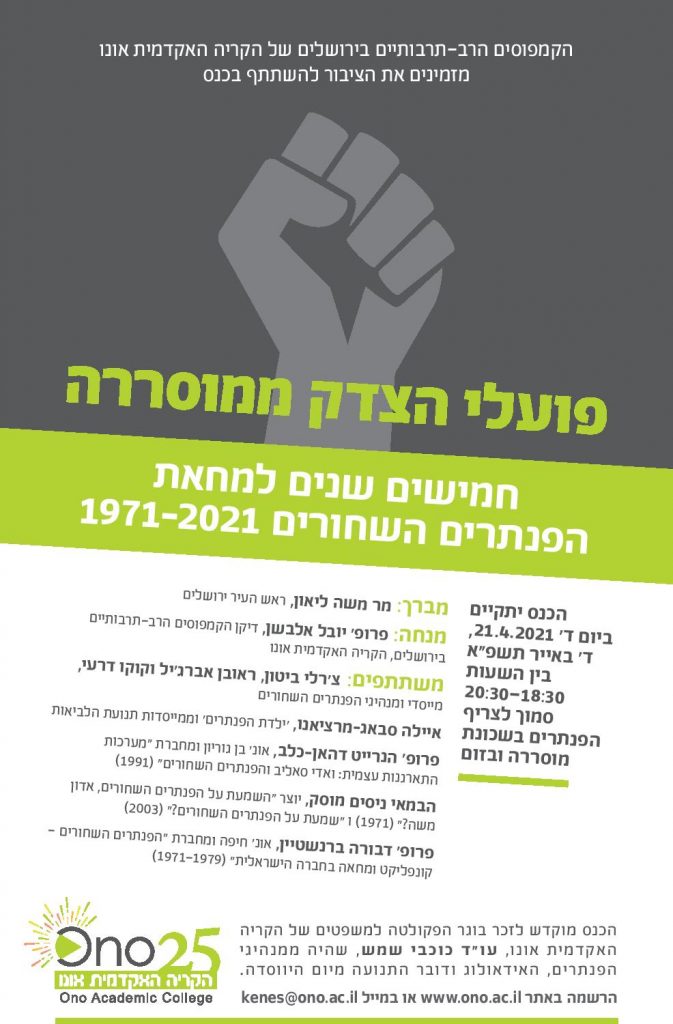 Ono Academic College’s Jerusalem Multicultural Campus hosted a conference entitled “Justice Activists from Musrara: Marking 50 Years Since the Black Panthers’ Protests – 1971- 2021” on April 21, 2021. The conference was broadcast on zoom live from the original shack used by the Black Panthers as a headquarters in Jerusalem’s Musrara neighborhood.