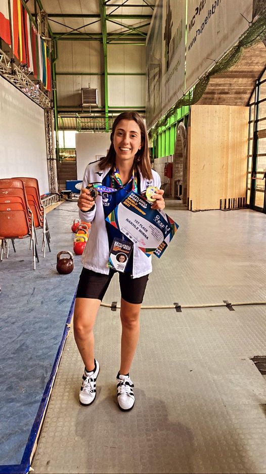 Mirna Nakhle, a student at Ono Academic College, won the Gold Medal in the recent World Kettlebell Competition held in Italy. Competing in the 52kg category, she completed 73 snatch repetitions securing first place at the meet. Mirna helped lead the Israeli team to a third place finish coming in ahead of Germany and the US. Congratulations!