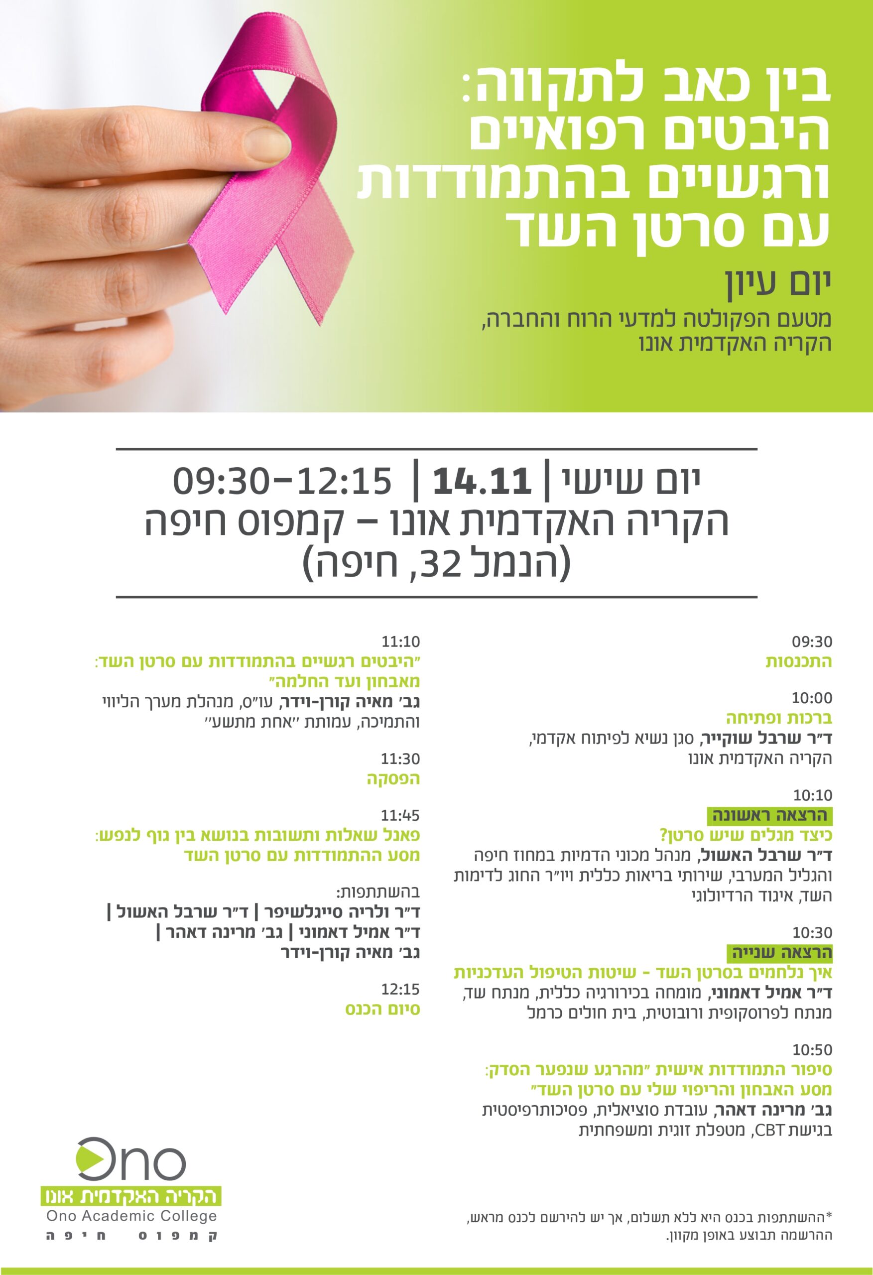 "בין כאב לתקווה: היבטים רפואיים ורגשיים בהתמודדות עם סרטן השד" – יום עיון מטעם הפקולטה למדעי הרוח והחברה