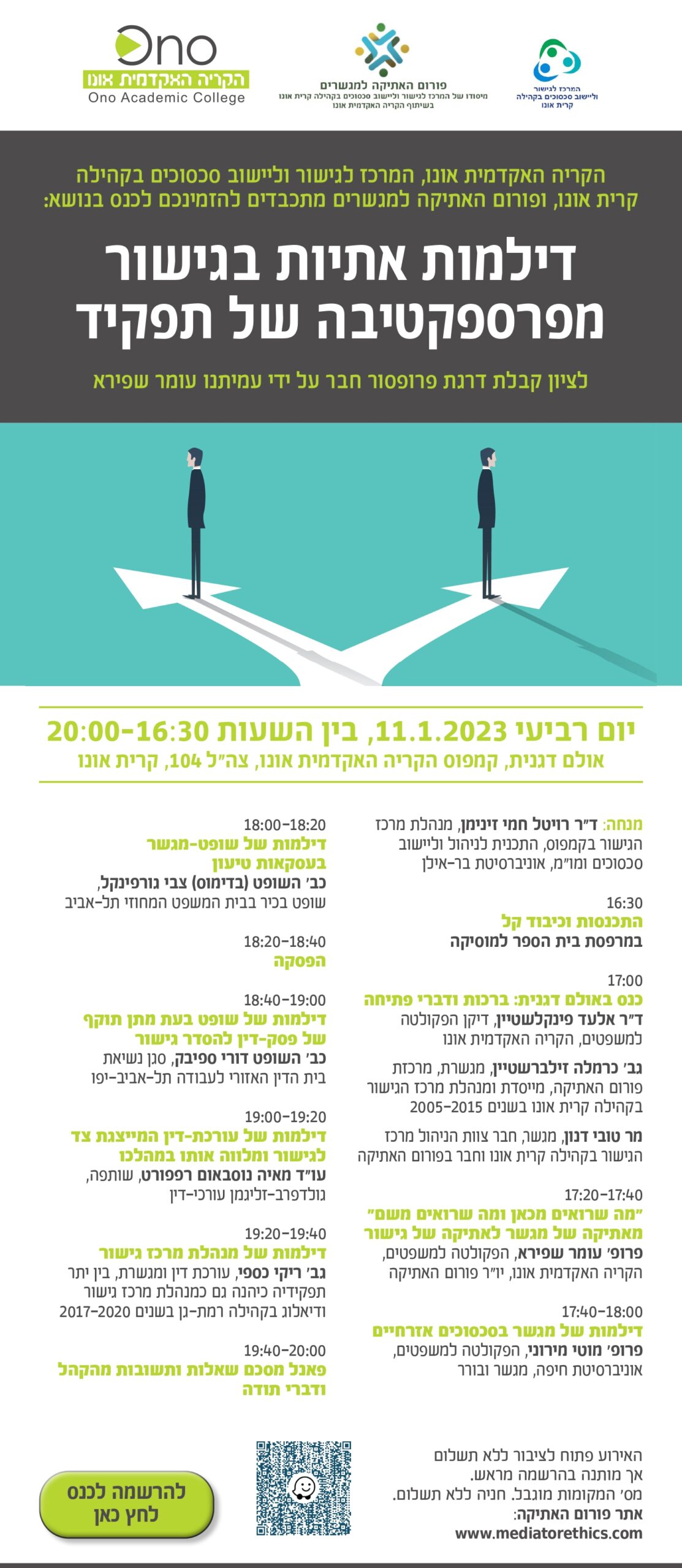 כנס בנושא: דילמות אתיות בגישור מפרספקטיבה של תפקיד
