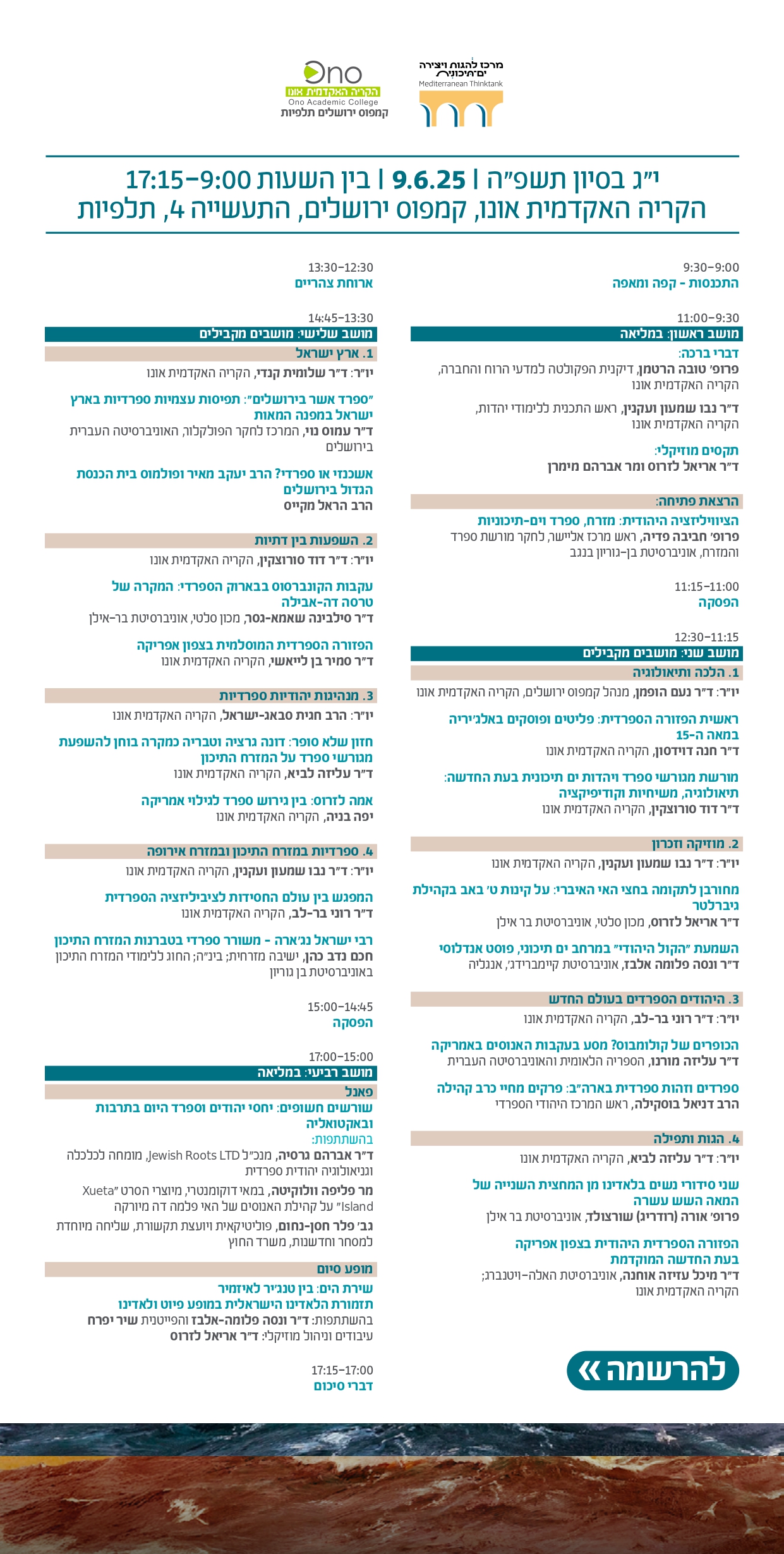 מועד: יום שני | יג בסיוון תשפ"ה, 9.6.25 | בין השעות 9:00 – 17:00
